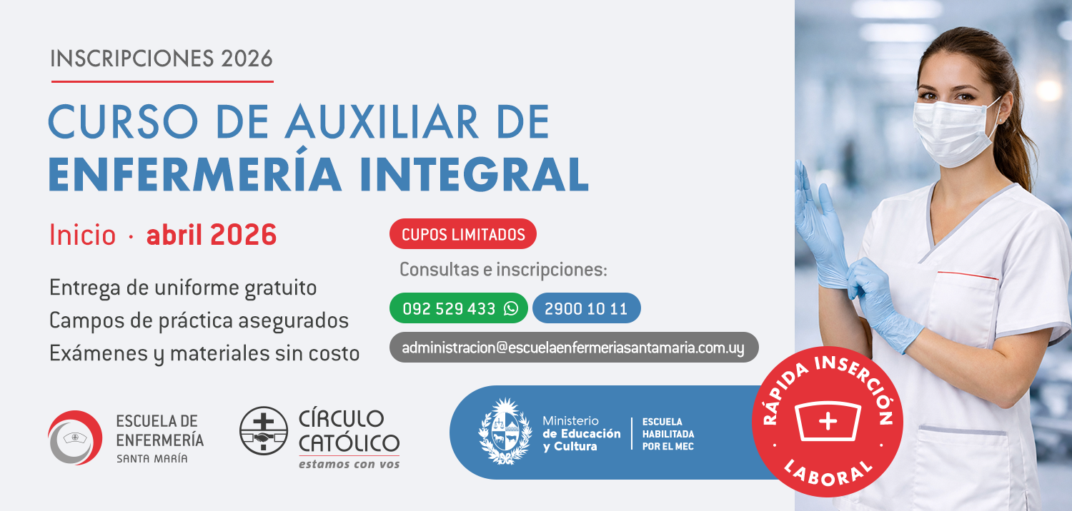 Están abiertas las inscripciones para: Enfermería Médico Quirúrgica. Inscripciones del 20/06 al 01/07 Inicio de cursos Agosto 2022 Inscripciones: Andes 1409 / apto 101 ó por el 2900 10 11. Cupos limitados- Inscripciones con agenda previa. ...