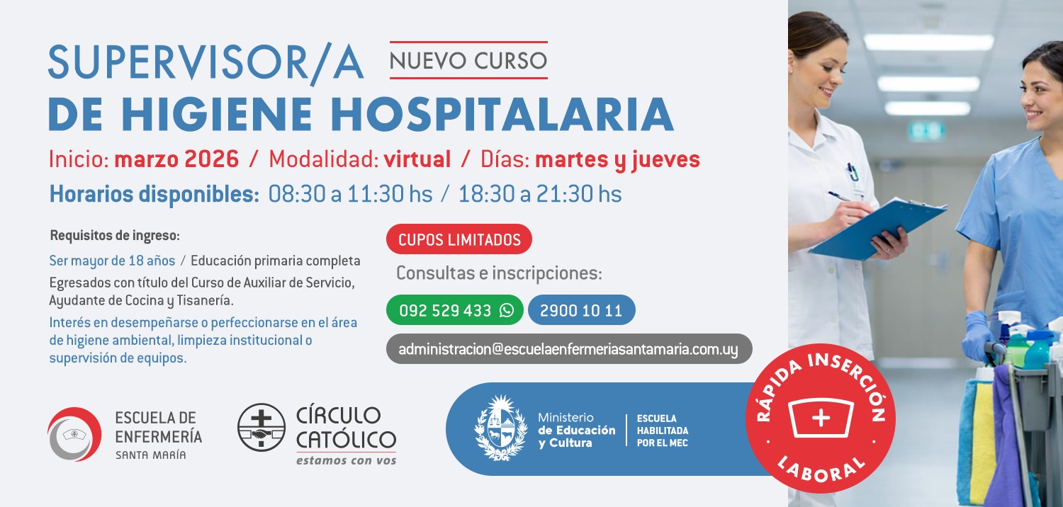 La Escuela de Enfermería «Santa María» del Círculo Católico de Obreros del Uruguay es una institución educativa inspirada en la vocación de servicio a la sociedad, ofrece educación integral en el ámbito de la salud, comprometida con la calidad, integra métodos innovadores de aprendizaje, pero mantiene como pilares en la formación de sus estudiantes la ética, defensa a la vida, solidaridad y el cuidado seguro, humanizado y centrado en las personas. Articula con otras instituciones educativas y científicas con la finalidad de fomentar intercambio y desarrollo técnico y humano de sus educandos.